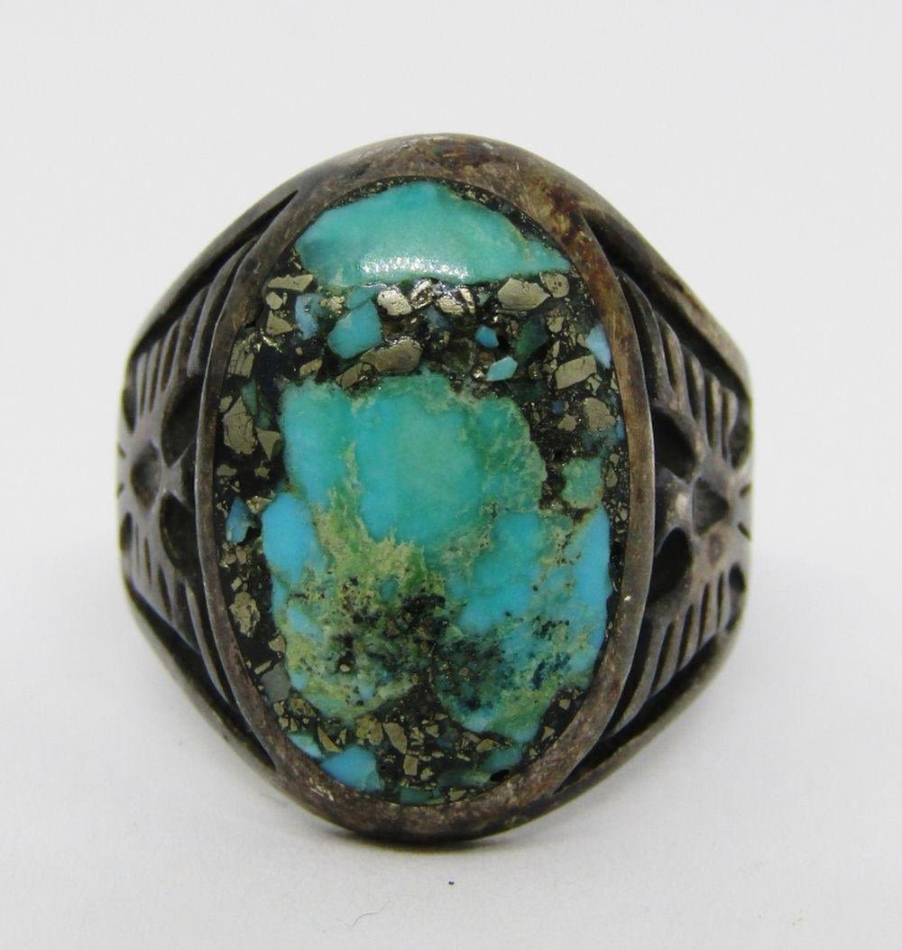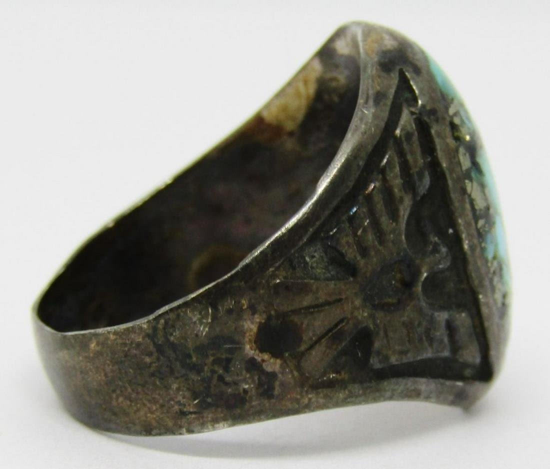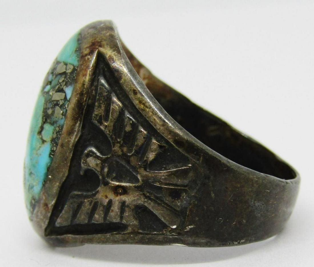 CENTER STONE-THUNDERBIRD DESIGN ON BAND-RING SIZE 8-TOTAL 8.5 DWT