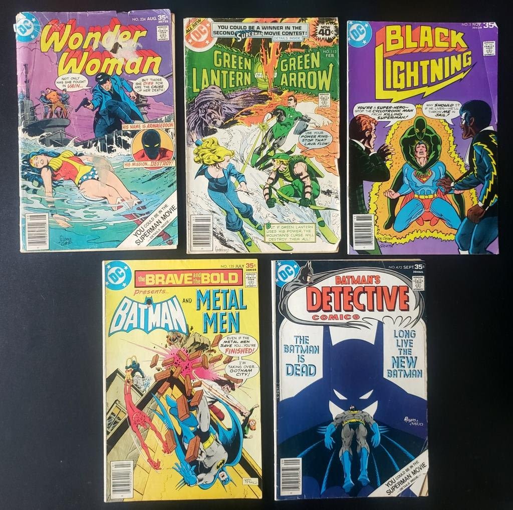 DETECTIVE COMICS #472, 1977 BRAVE & BOLD #135, 1977 #5 BLACK LIGHTNING, 1979 #113 GREEN LATERN & GREEN ARROW, 1977 #234 WONDER WOMAN