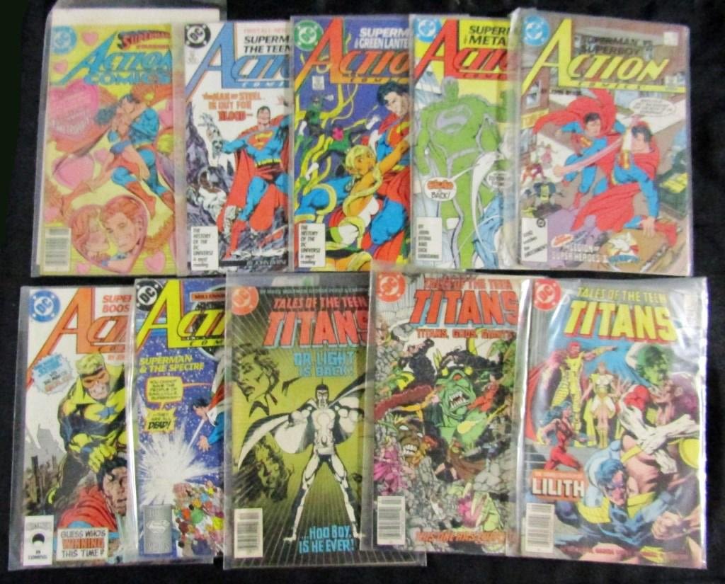 Action comic #568,584,589,590,591,594,596-Tals of the teen Titans #49,67,69