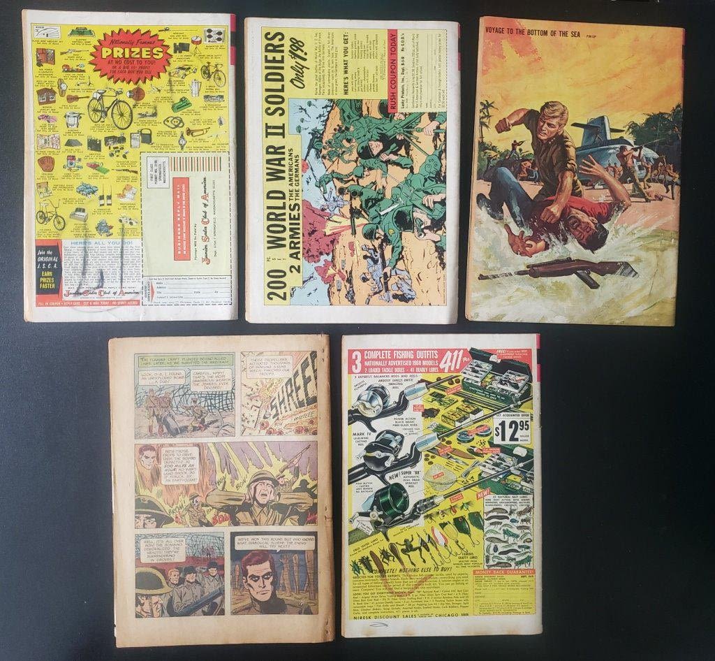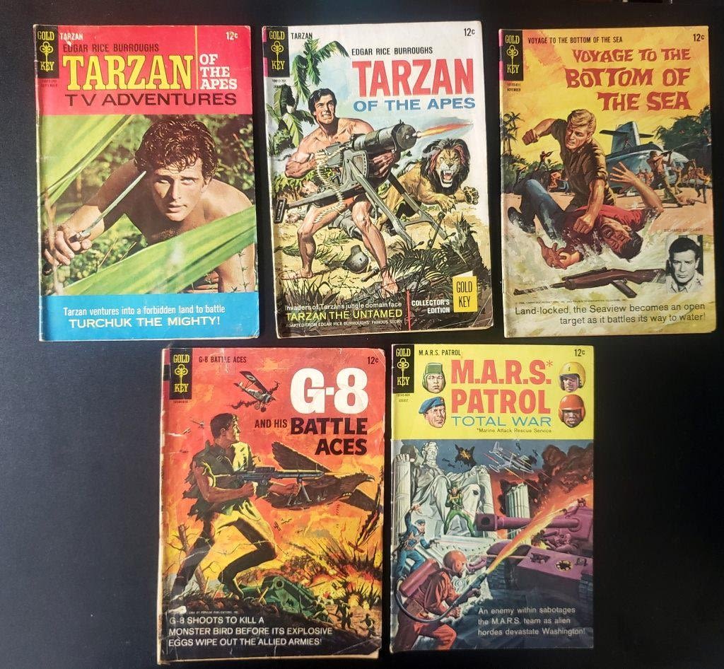 1966 #1 G-8 AND HIS BATTLE ACES (missing back cover), 1966 #6 VOAYGE TO THE BOTTOM OF THE SEA, 1967 #163 & #177 TARZAN