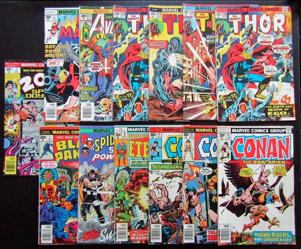 #1 Black Panther-#1 Space Odyssey-#9 Eternals-#5 Ms Marvel-Conan #67,71,75-Thor #224,228,228,229-#152 Avengers, 1982 spiderman