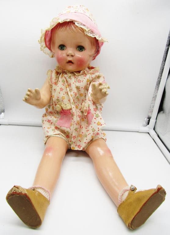 NO MAKINGS – EYES OPEN & CLOSE – 19" LONG – COUPLE of SMALL CRACKS IN HAIR