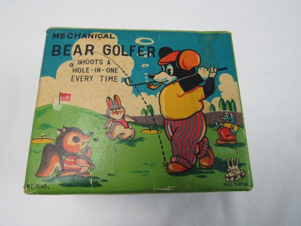 Windup Hamms Beer Bear Golfer & Box Working – BEAR’s EARS ARE DETACHED but IN BOX