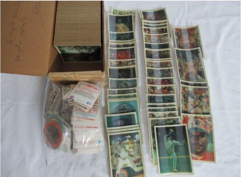 COMMON CURVED BUT NO to LITTLE CRACKS – LIGHTLY YELLOWED but that’s VERY COMMON – NICE EM/NM – LOOKS TO BE ALL DIFFERENT plus BAG FULL TRIVIA CARDS & FEW DISC