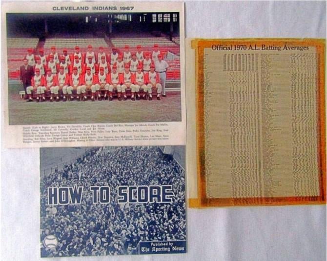 HOW TO SCORE, 1958 NATIONAL LEAGUE SCHEDULE POSTER, INDIANS PHOTOS, NEWS PAPER CLIPPINGS & MORE