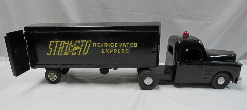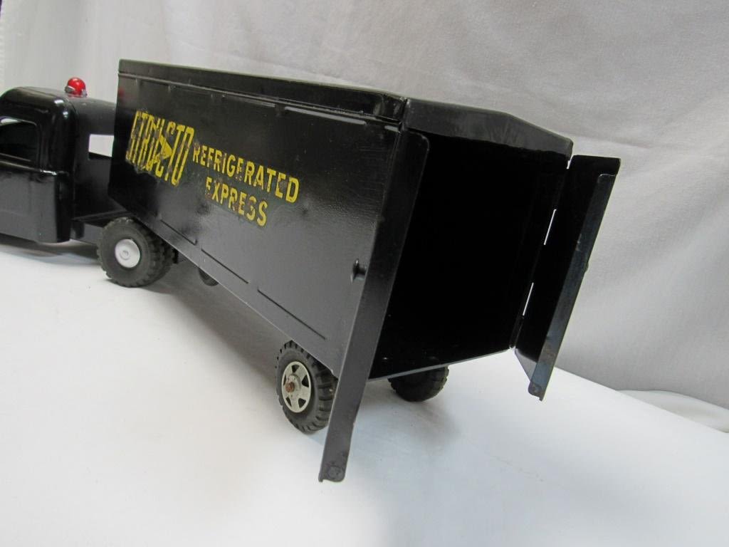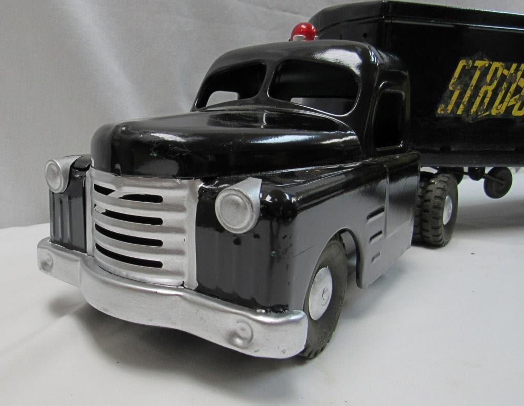 TRACTOR TRAILER PRESSED STEEL SIME – NOT SURE IF THIS IS A MATCHING SET – REPAINTED BLACK
