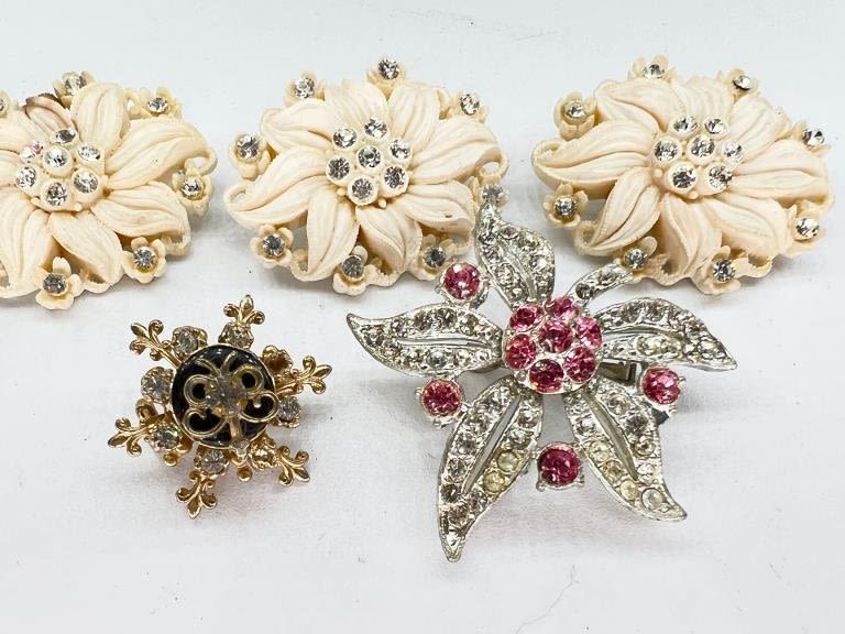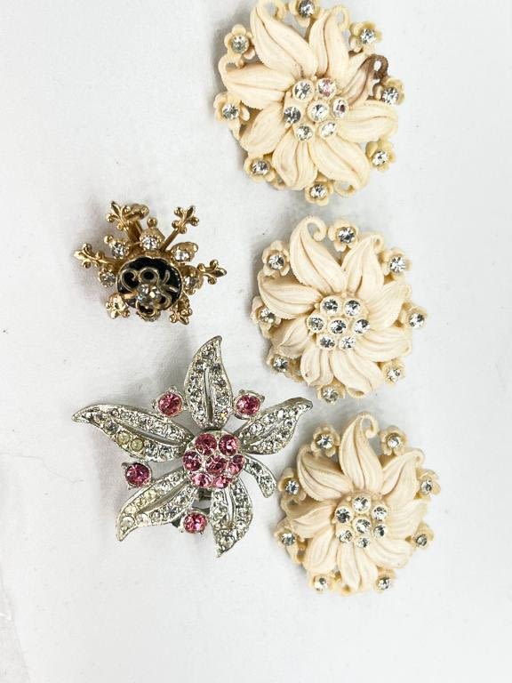 3 EXQUISITE BUTTONS AND 2 BROOCH