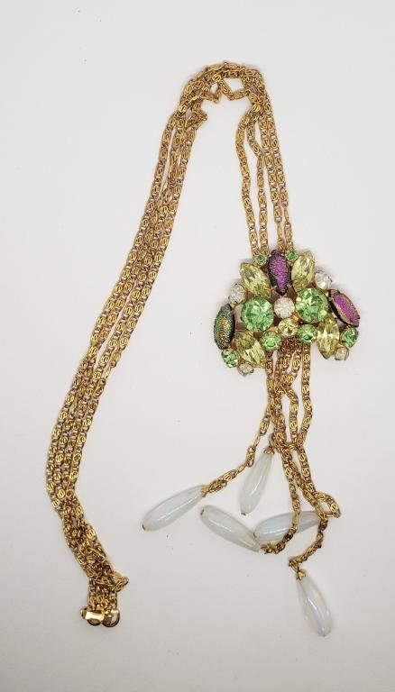 VINTAGE SPARKLE RHINESTONE DANGLE NECKLACE , SO PRETTY IN PERSON !!!