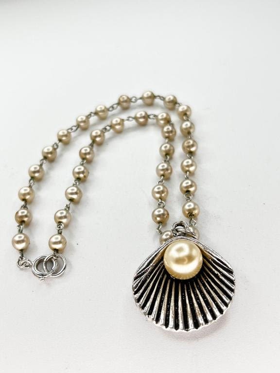 MONET NECKLACE AND EARRING SHELLS AND FAUX PEARLS SET