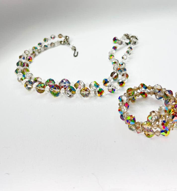CRYSTALS NECKLACE AND EARRINGS , LOT OF SHIMMER !!!