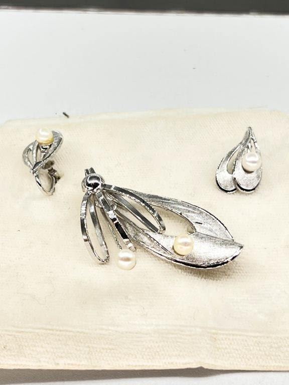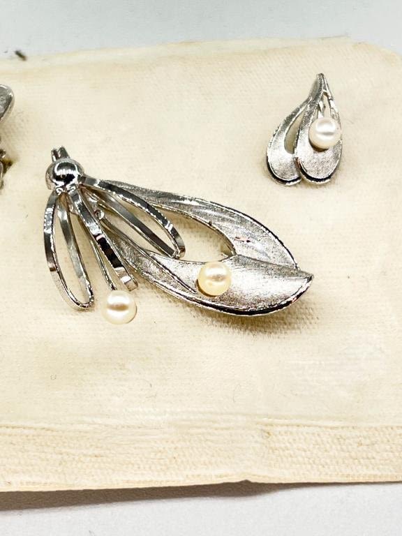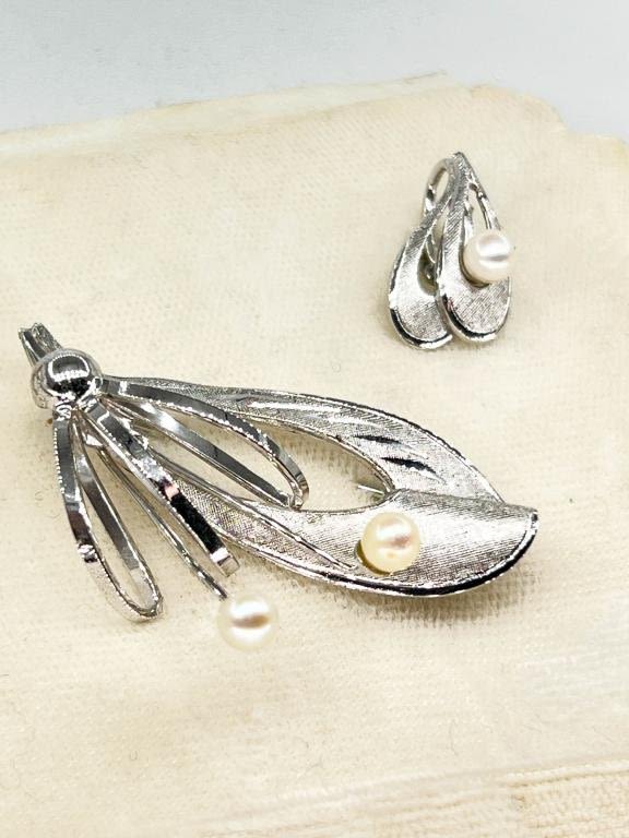 STERLING BROOCH AND EARRINGS WITH FAUX PEARLS 6 GR TW