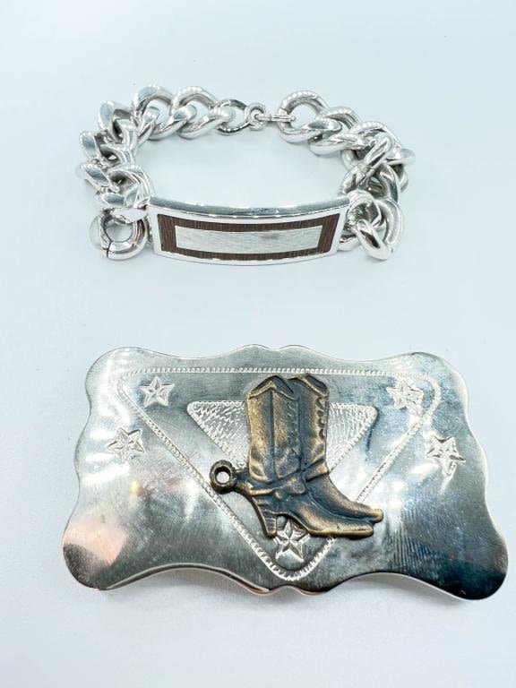 GENTS BUCKLE AND BRACELET , COWBOY BOOTS , STYLISH