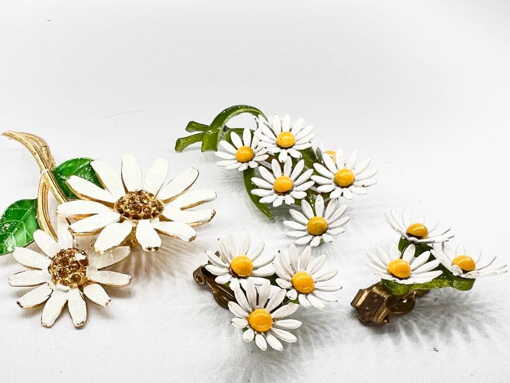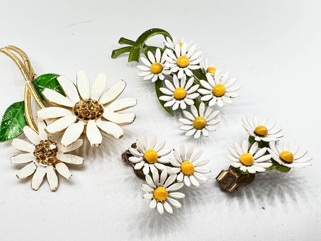 FLORAL DAISIES FOR SPRING ! VINTAGE ITEMS INCLUDES ONE LARGE BSK FLORAL BROOCH