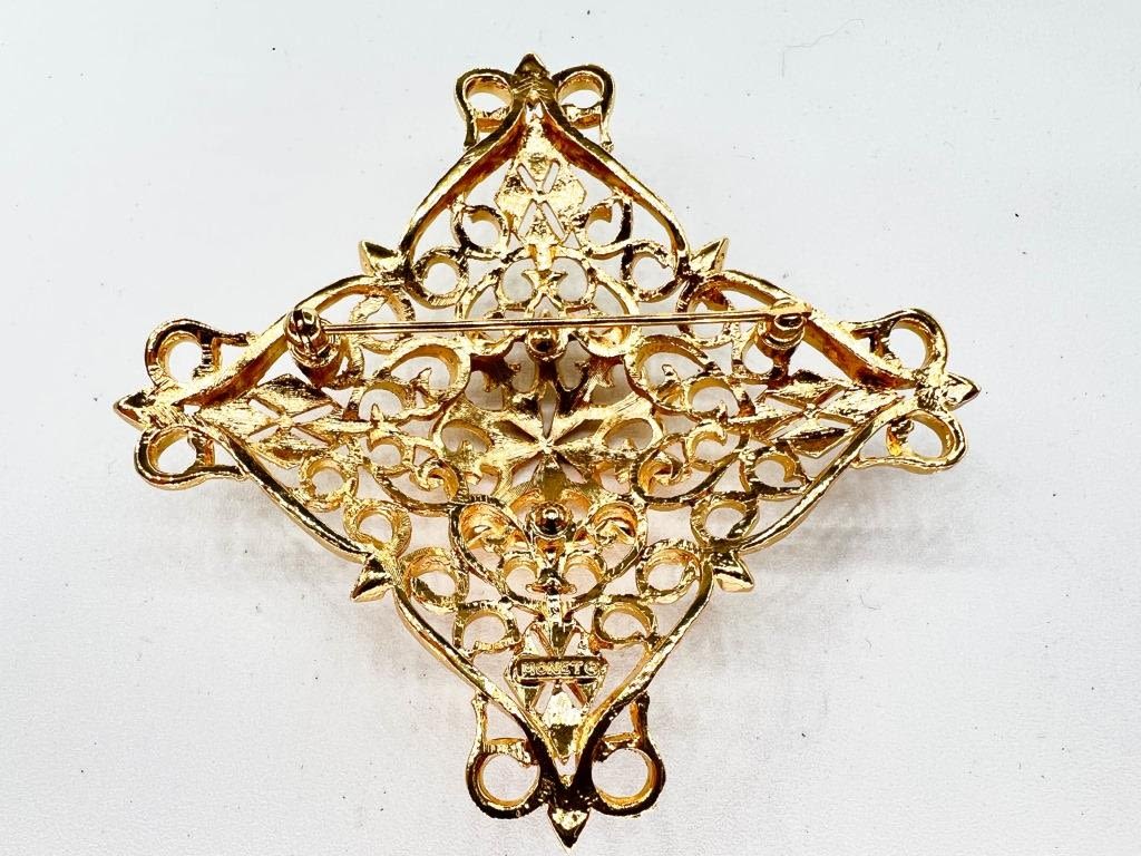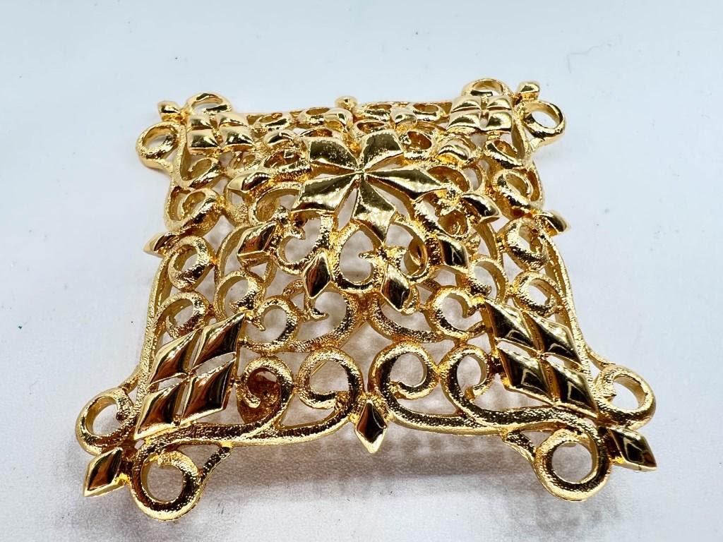 MONET LARGE SQUARE FILIGREE BROOCH , IN VERY NICE CONDITION, SIGNED MONET
