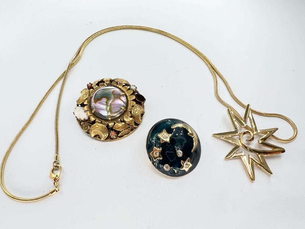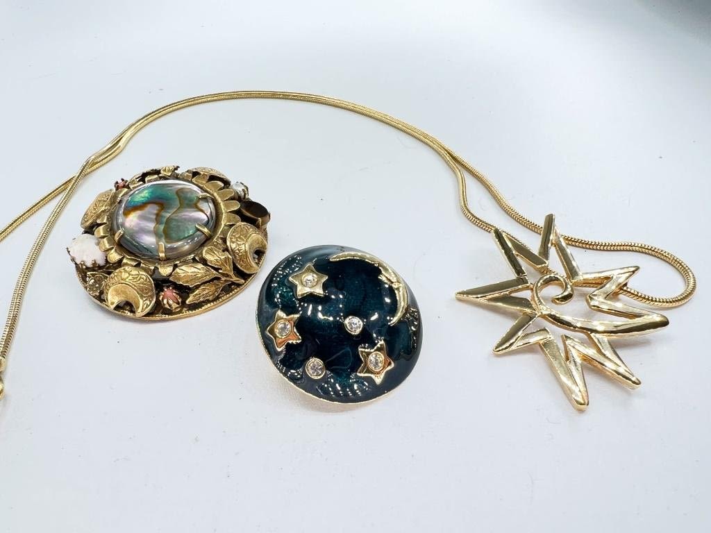 MOON AND STARS COLLECTION , DETAILED, ROMANTIC, 2 BROOCH, 1 NECKLACE , AWESOME !