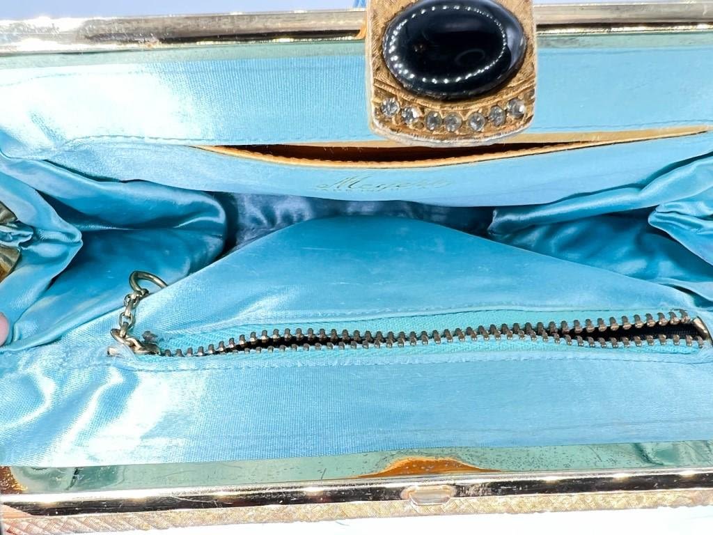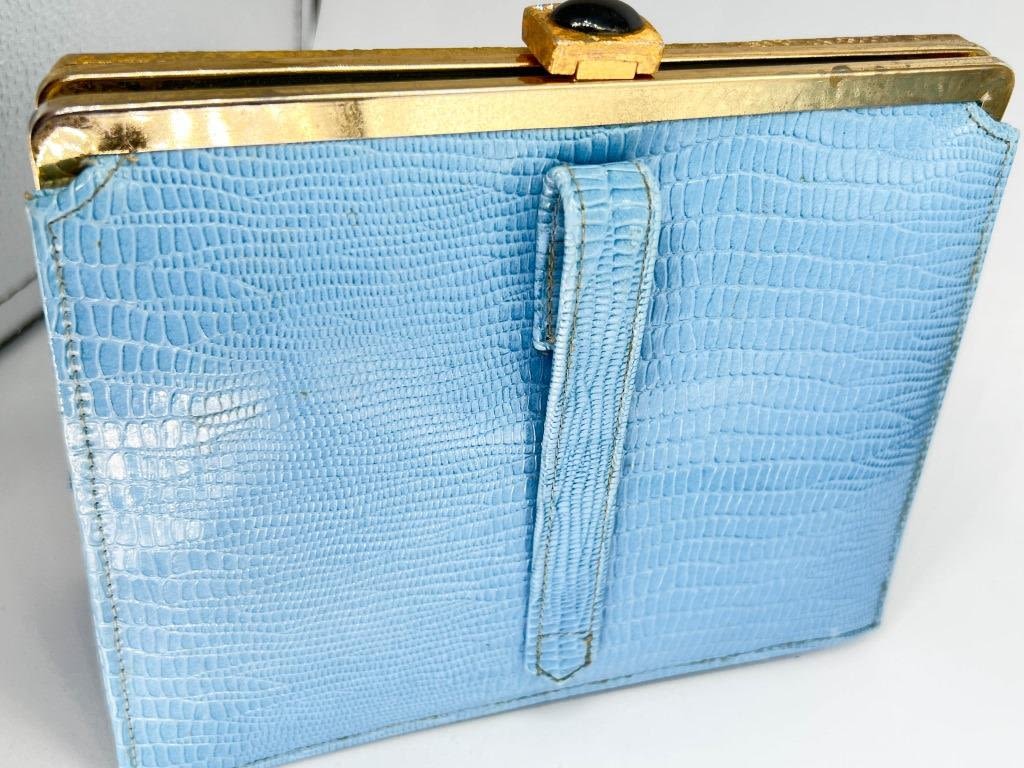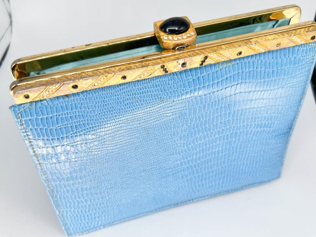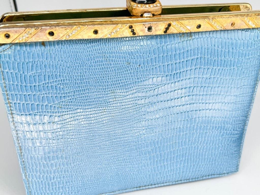 Vintage Meyers Blue Embossed CLutch with black Hued Cabochon