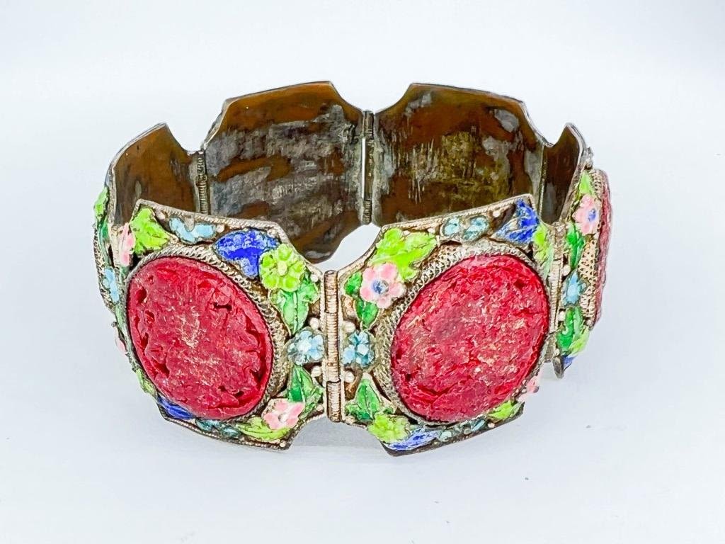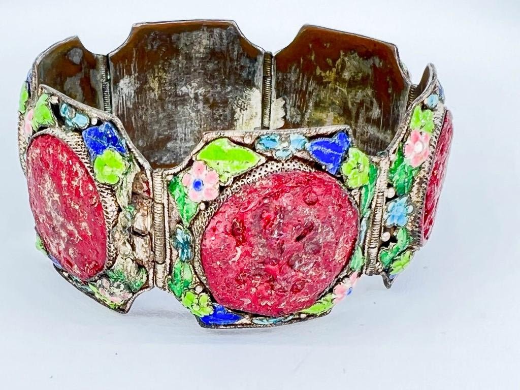 LARGE COLORFUL MOSIAC STONE BRACELET , CORAL ?