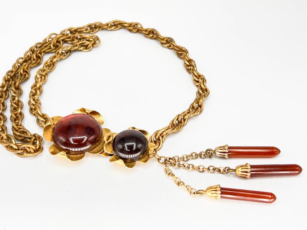 LARGE HEAVY STONE NECKLACE WITH DANGLES