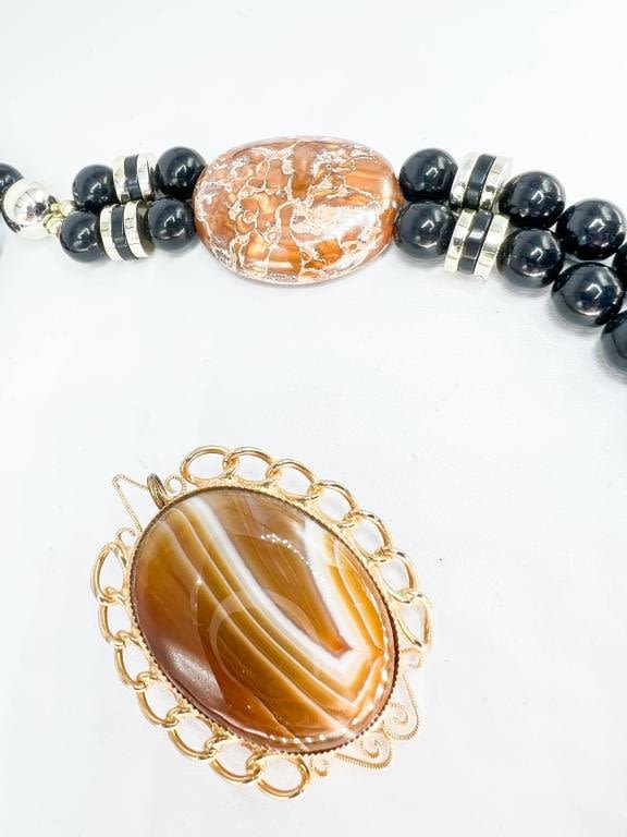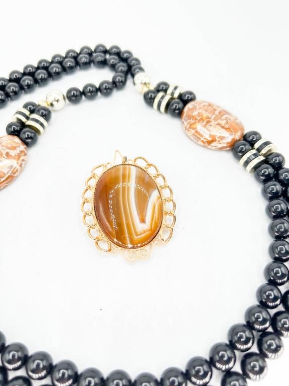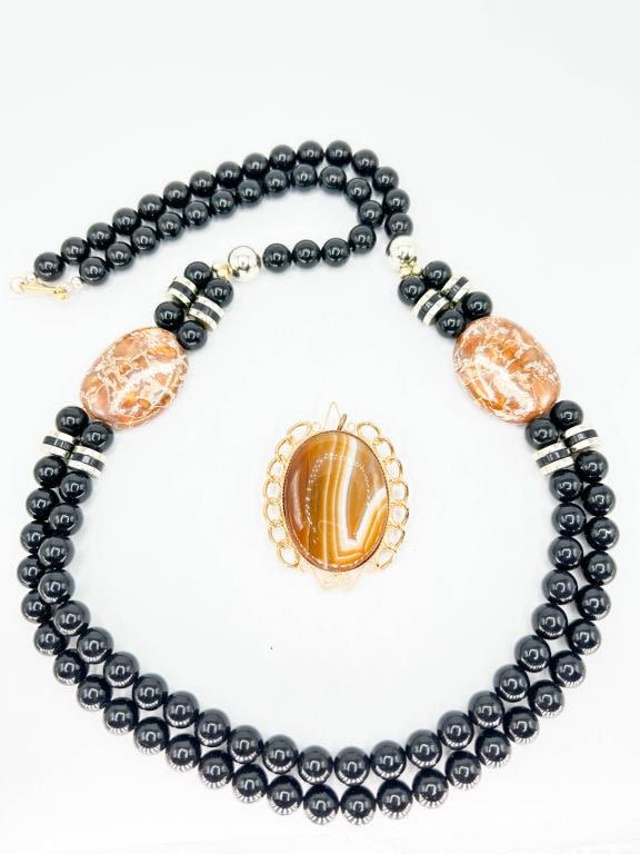 VINTAGE ART DECO STONE AND BEAD NECKLACE & STONE PENDANT , STYLISH !