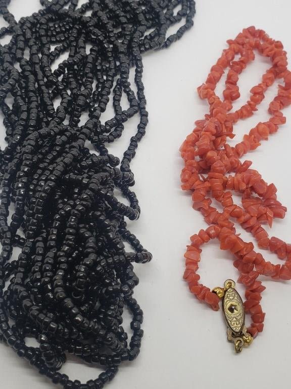 NECKLACE-MULTI STRANDED PLUS (1)CHIPPED RED CORAL STONE NECKLACE