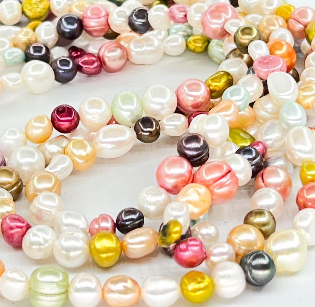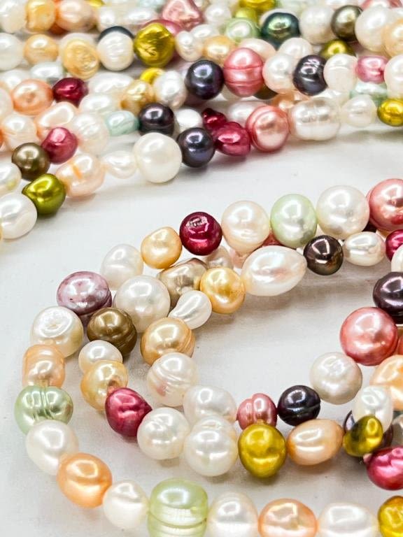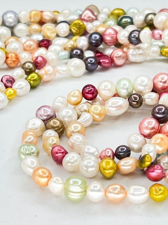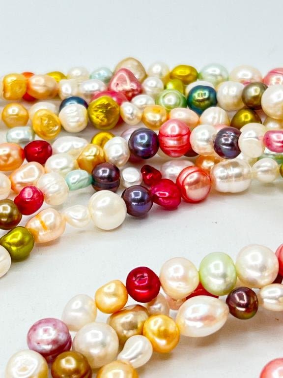 LUXURIOUS COLORFUL STRINGS OF BEADS, LONG , FAIRLY HEAVY , VERY NICE