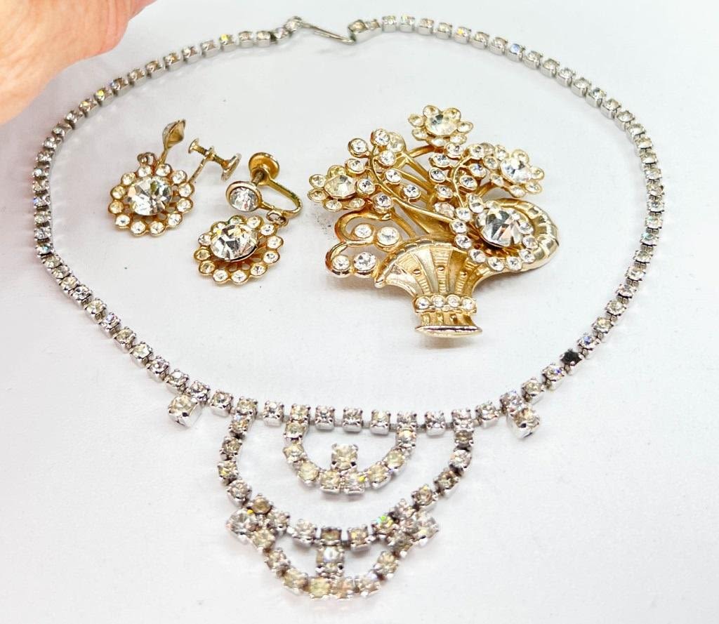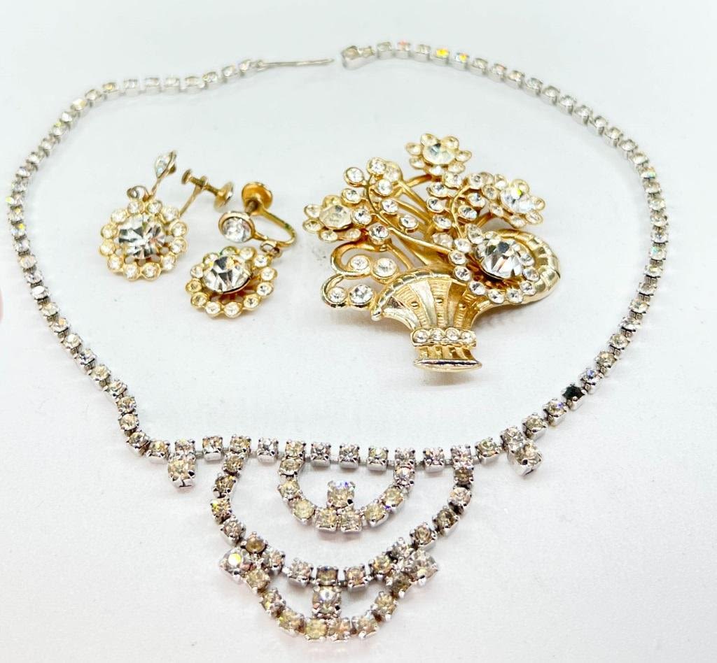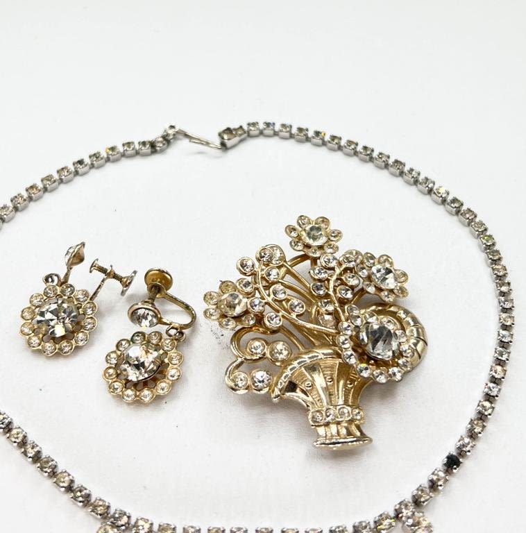 BOUQUET BROOCH & EARRINGS, NECKLACE