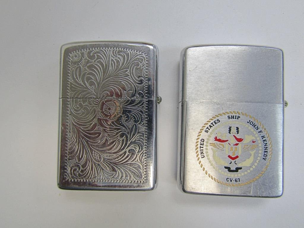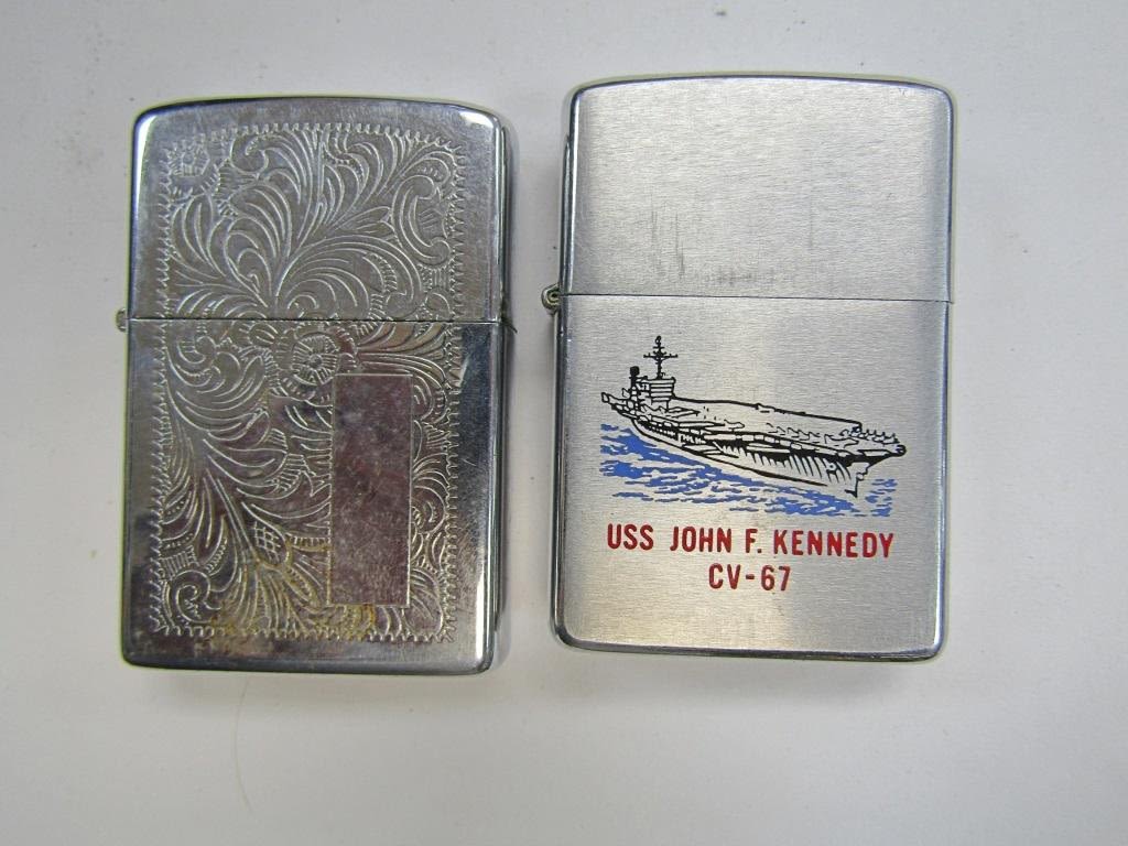 ONE WITH "USS JOHN F KENNEDY" ON BOTH SIDES, ONE WITH FLORAL DESIGN