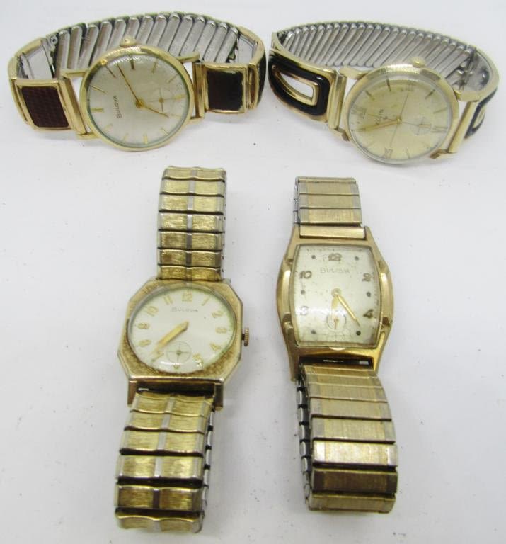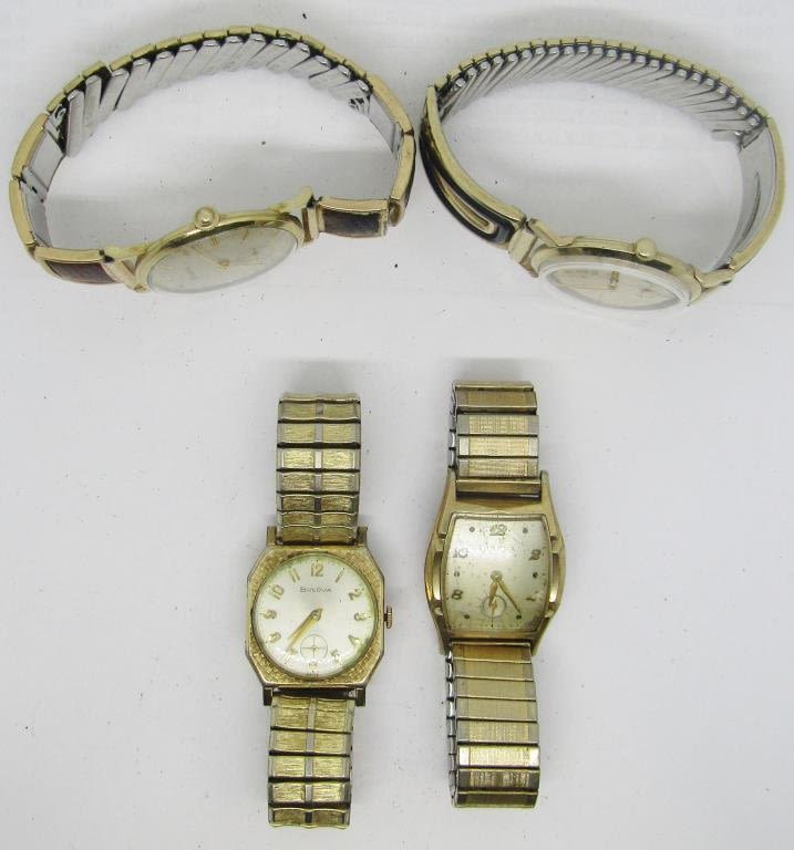 3 Bulova and 1 Elgin brand watches, all vintage mens classy watches – Not Tested