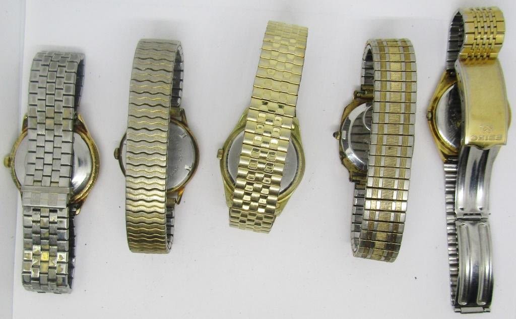 Timex, Elgin, Seiko brands. All gold toned mens watches – not tested