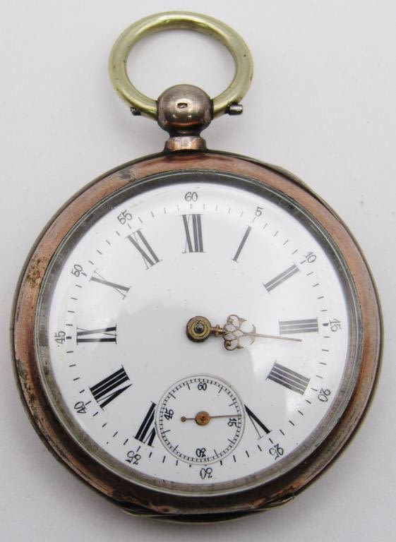 KEY WIND & SET – NO KEY – RUNNING but NEEDS WORK/CLEANED – BACK CASE HINDGE BROKE, MISSING HOUR HAND