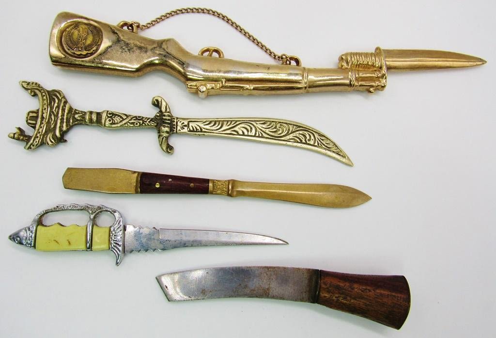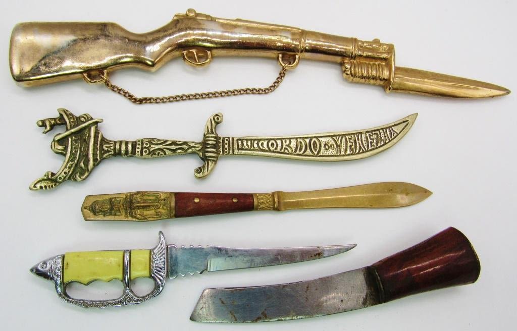 RIFLE, WOOD HANDLE, (2) DAGGERS AND ITALIAN SWORD LETTER OPENER KNIVES