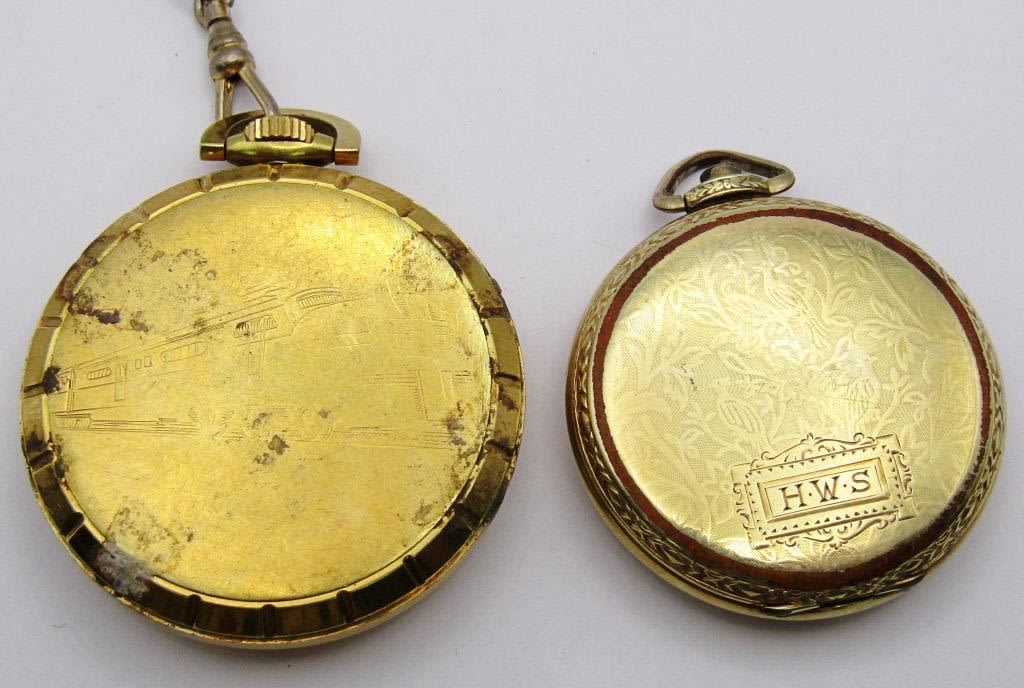 NICOLET 17 JEWEL INCABLOCC with TRAIN on FACE & CASE (UNABLE TO OPEN BACK, NOT RUNNING); BURLINGTON OPEN FACE missing CROWN, NOT RUNNING