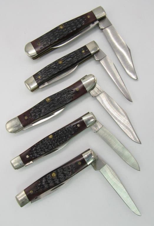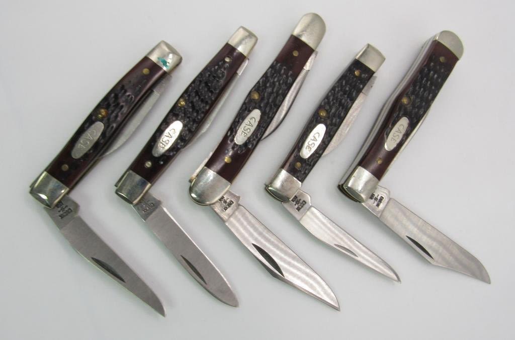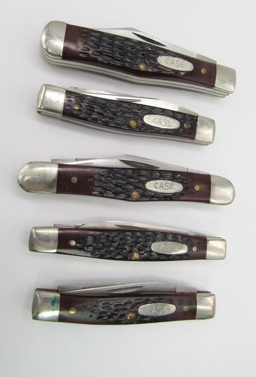 FIVE CASE POCKET KNIVES, 2" BLADES, GREAT CONDITION