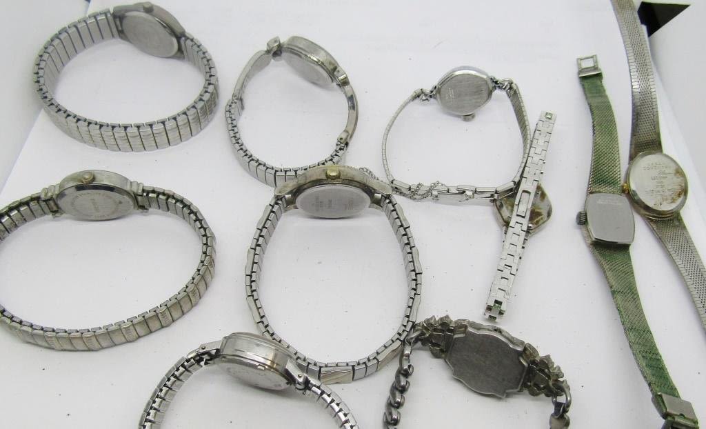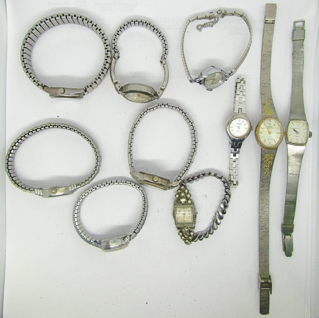 SET OF 10 UNTESTED LADIES WRIST WATCHES; SARAH COVENTRY, VIVANI, CARRIAGE, WALTHAM, SWISS MADE BUCHERER, BENRUS (17 JEWEL), MILBER, PHASAR & OTHERS
