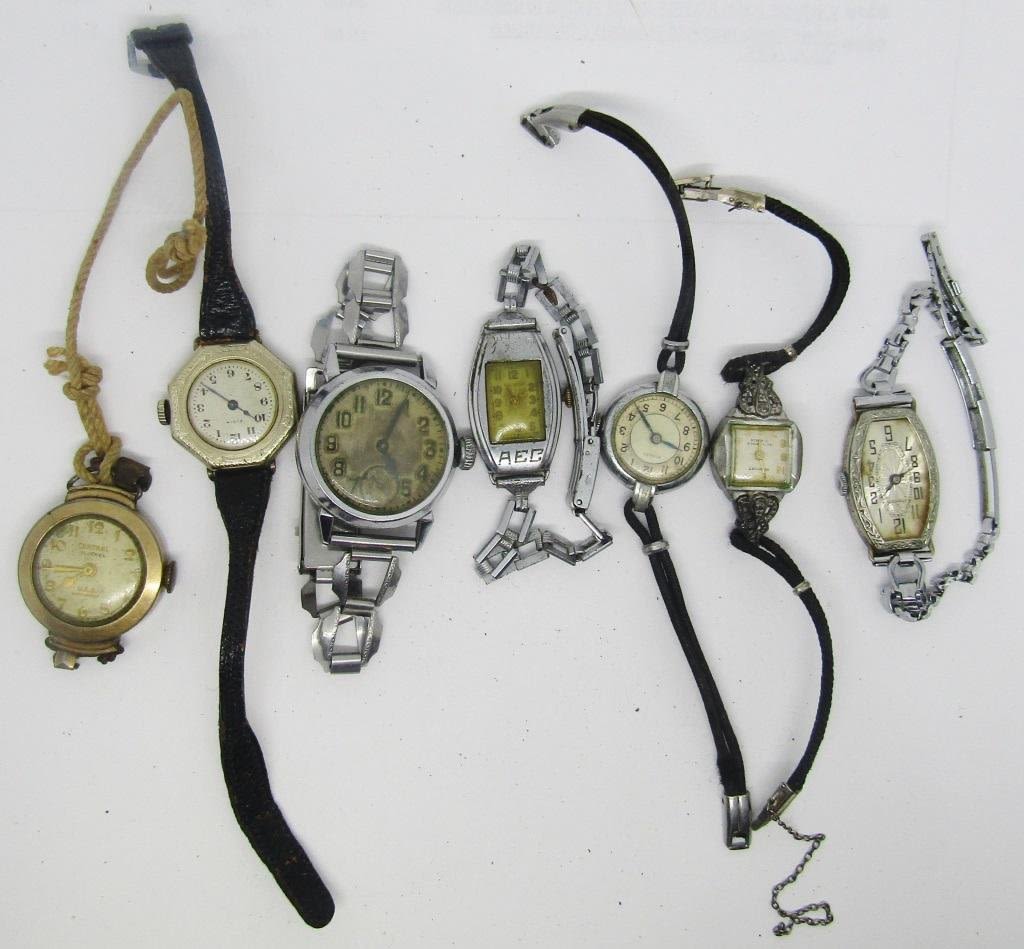SET OF 7 UNTESTED LADIES WRIST WATCHES; TALISMAN, NEWPORT, CENTRAL (17 JEWEL), FONTAIN, ELGIN, SUSSEX & OTHER