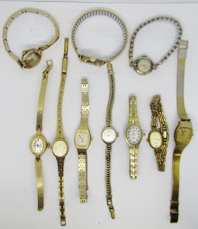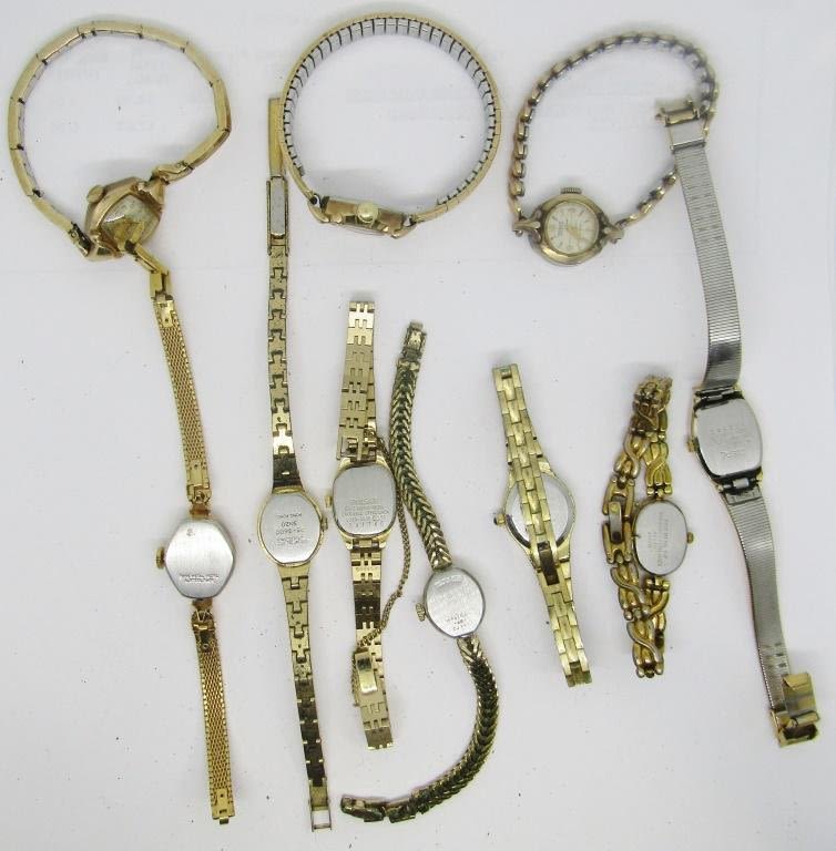 SET OF 10 UNTESTED LADIES WRIST WATCHES; BULOVIA, ELGIN, GRUEN, ARMITRON, PULSAR, TIMEX, WALTHAM & JACQUES PROVARD