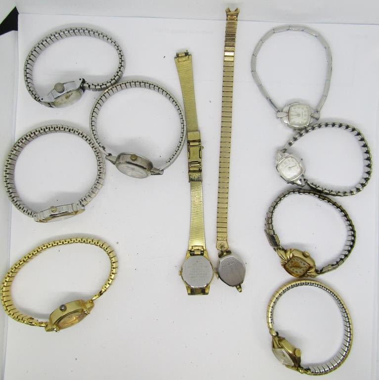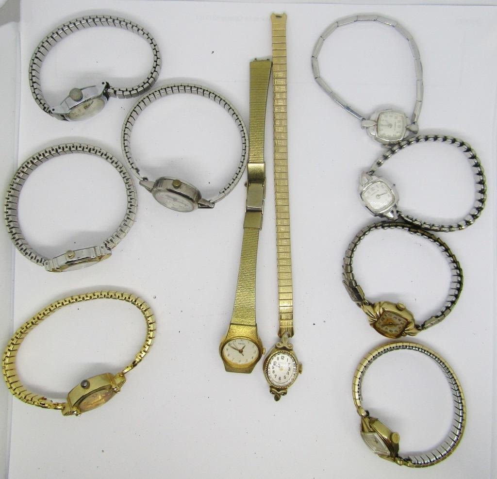 SET OF 10 UNTESTED LADIES WRIST WATCHES; SEIKO, SHARP, CARAVELLE, TIMEX, ELGIN & OTHERS