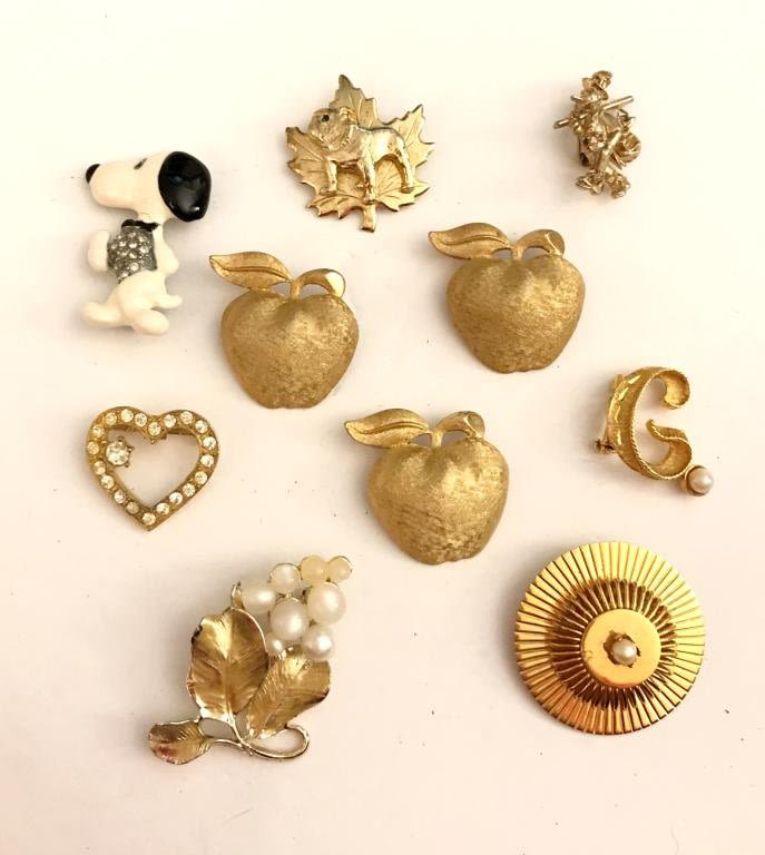 GOLD TONE, FAUX PEARL, APPLES, BULLDOG LEAF, SNOOPY, HEART