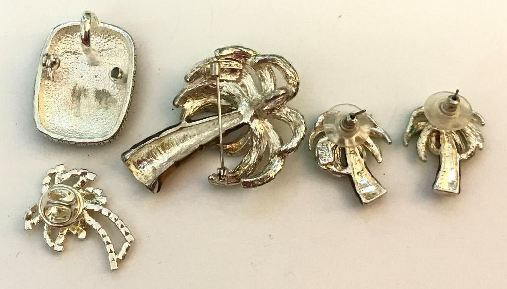 2 BROOCHES/ PIN, ONE PENDANT FOR NECKLACE AND ONE PAIR OF EARRINGS (ONE MARKED "BEST"