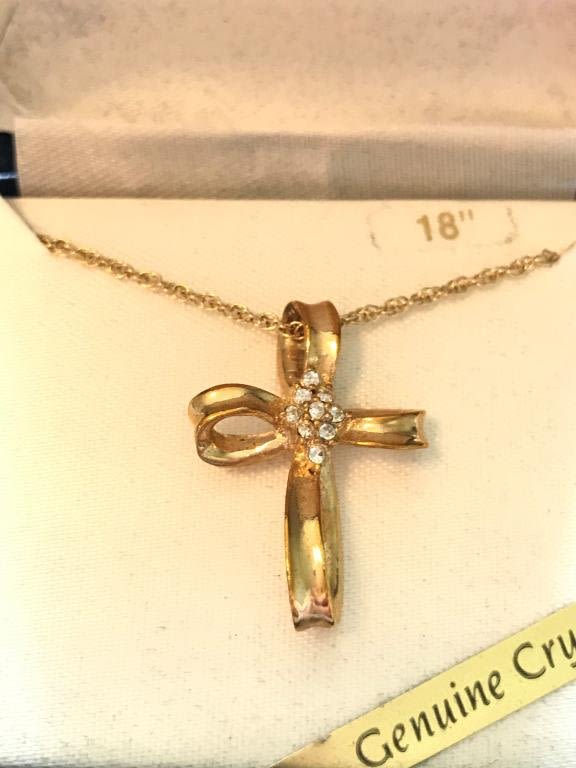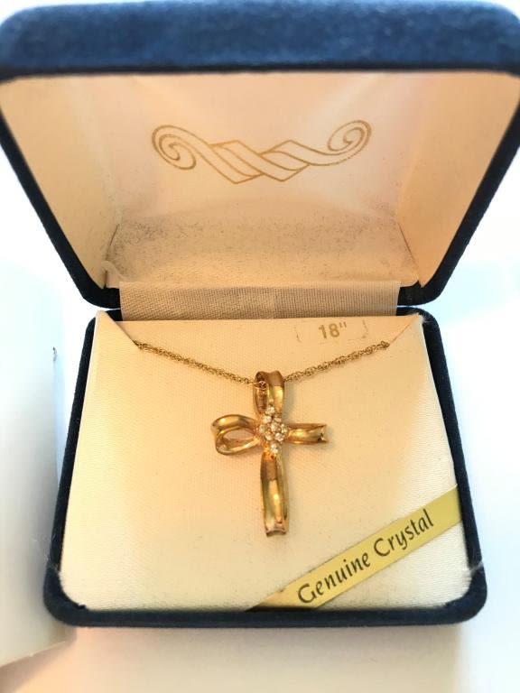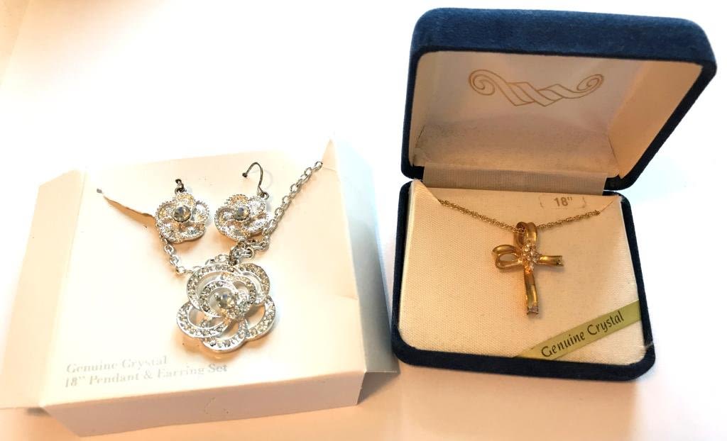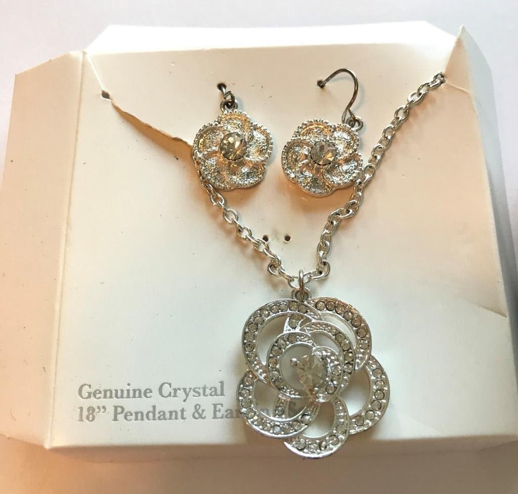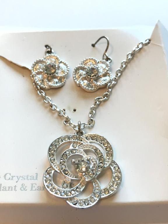 FLOWER NECKLACE WITH MATCHING EARRINGS & CROSS
