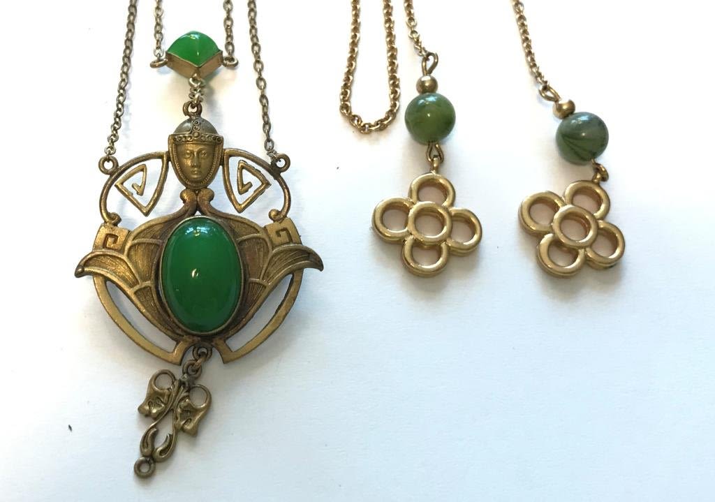 2 BRACELETS, 1 NECKLACE/ BROOCH, GLASSES HOLDER