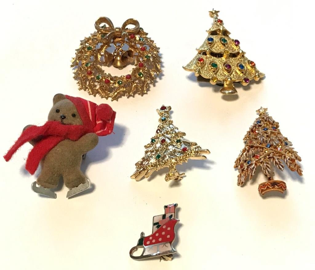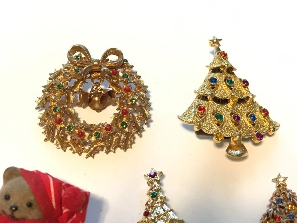 WREATH MISSING RHINESTONE/S, TEDDY BEAR, TREE, 1 MARKED "ART", SLEIGH