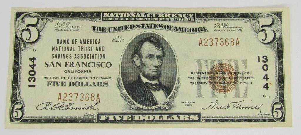 1929 $5 NATIONAL CURRENCY SAN FRANCISCO