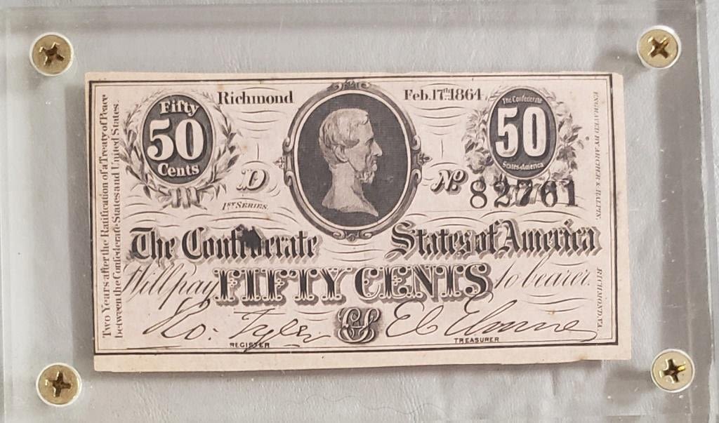 SMALLER SIZE CONFEDERATE STATES OF AMERICA NOTE In VTG SCREW DOWN HOLDER