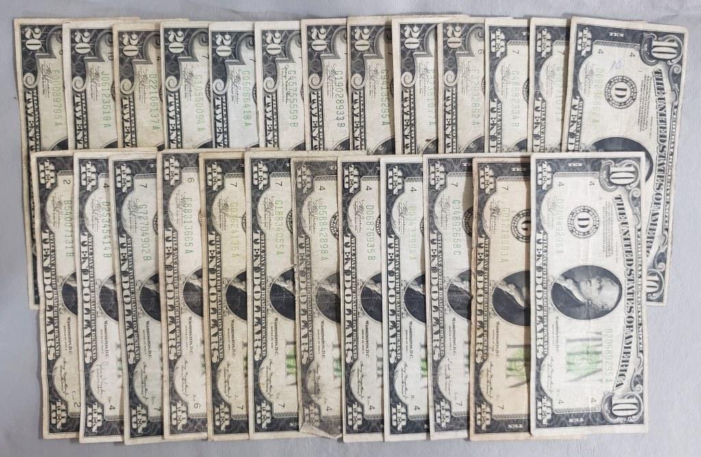(10) $20, (15) $10 – CIRC LOT – $350 FACE VALUE