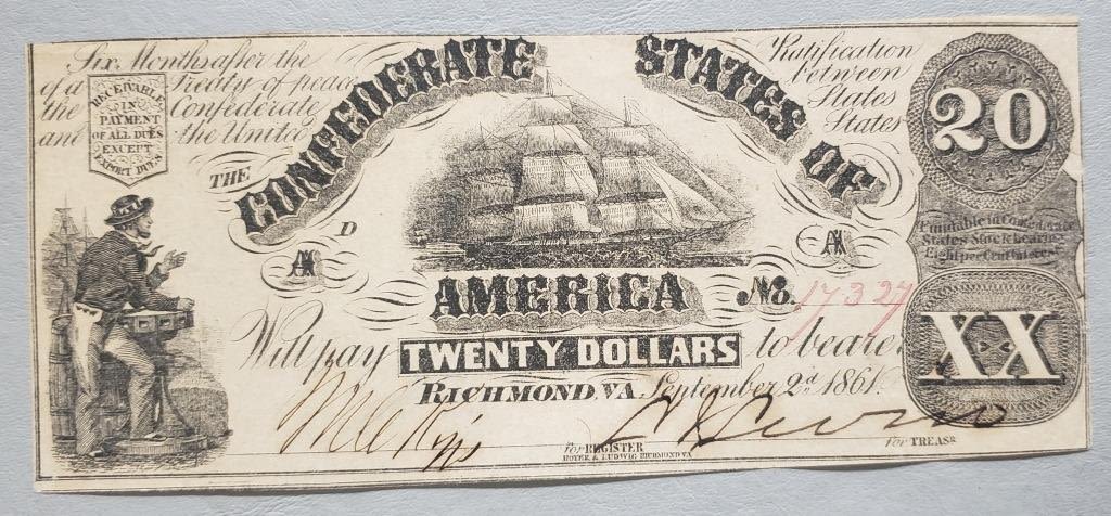TWENTY DOLLARS RICHMOND, VA CONFEDERATE NOTE – NICE CONDITION