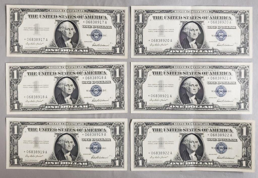 (6) $1 SILVER CERT "STAR" "CONSECUTIVE #"
