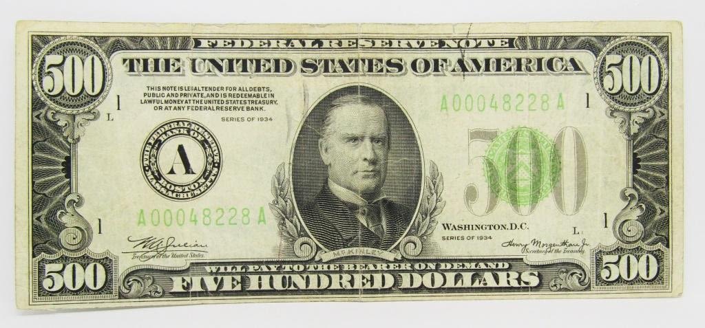 FIVE HUNDRED DOLLARS U.S. CURRENCY