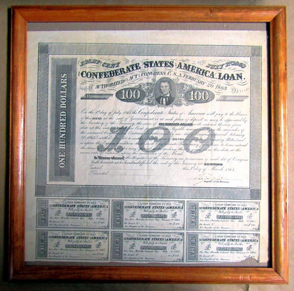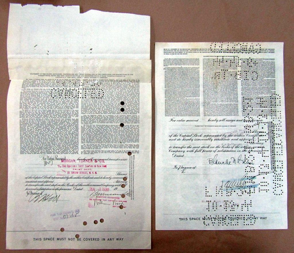 W/ COUPONS UNCUT in FRAME & (2) SHARE CERTIFICTATES