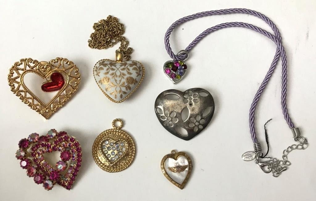 BROOCHES NECKLACES PINS PENDANTS– PINK RHINESTONES CLEAR RHINESTONES RED HEART